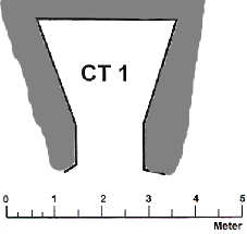 CT 1 ist ein einfaches Felsengrab mit nur einer Kammer. Diese war völlig mit Flugsand gefüllt. Die Kammer wurde vollständig beräumt und gesäubert. Artefakte waren nicht vorhanden. Lediglich an der Rückwand befanden sich geschwärzte Überreste eines alten Schwalbennestes.