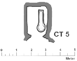 CT 5 liegt in einer Linie mit CT 3 und ist wie dieses ein sehr einfaches Einkammergrab. Es war mit Sand und Gesteinsschutt gefüllt. Im Eingang, der durch locker liegendes Gestein blockiert war, wurde ein menschlicher Schädel gefunden. Im Grab befand sich ein Tonsarkophag. Auf dem zerbrochenen Deckel war eine sehr rauhe geformte Oberfläche. Hier befanden sich zwei weitere Schädel und eine Anzahl Knochen, aber nichts Weiteres.