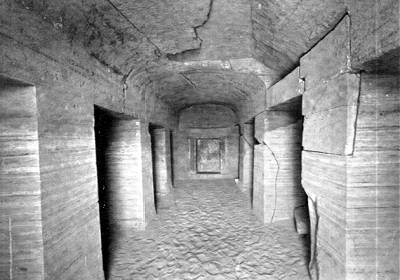 Am Gebälk der nördlichen Pfeilerstellung waren Ausbesserungen durch Werksteinstücke notwendig. Auch im nördlichen Seitenschiff mußten Flickungen vorgenommen werden: in der Nordwand befindet sich in 1,85 m Höhe über dem Sandboden eine große Öffnung, die in einen älteren, jetzt unzugänglichen Grabraum führt. Dieser Grabraum erstreckt sich wesentlich mehr in die Breite als in die Tiefe; eine Pfeilerstellung, die quer zur Eingangsrichtung verläuft, stützt die Decke.