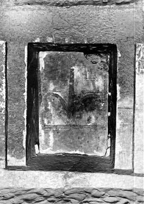 Die Felsenhalle, die man durch die 2,50 m hohe und 1,10 m breite Türöffnung betritt, erstreckt sich 9,50 in die Tiefe bei einer Breite von 8,25 m. Die Türöffnung ist links von einem flachen Pilaster eingefaßt. Der Raum ist durch zwei Reihen von je drei Pfeilern in seiner Länge in drei Schiffe gegliedert. Das breite Mittelschiff, das auf die Kultnische hinführt, ist mit einer flachen Tonne überwölbt; die Scheitelhöhe der Tonne liegt 3,25 m über dem sandigen Fußboden. Die schmaleren und weniger hohen Seitenschiffe haben flache Decken, die sich nach den Seitenwänden hin ein wenig senken; die mittlere Höhe beträgt 2,25 m. Die flache Wölbung der Tonne geht ohne eine Absetzung in die Architrave über. Der Querschnitt der aus dem anstehenden Felsgestein herausgearbeiteten Pfeiler ist annähernd quadratisch; die Pfeilerstärke beträgt 80-85 cm. Bei einer Höhe von etwa 2,00 m. Zwischen Pfeiler und Archivar ist eine Deckplatte von etwa 25 cm Stärke mit einem Überstand von 1 cm angedeutet. Die Kultnische ist dem Eingang gegenüber in die Felsenrückwand der Pfeilerhalle eingelassen. Ihre Bodenfläche liegt etwa 30 cm über dem sandigen Fußboden der Halle. Die Seitenwände der Nische sind geglättet und tragen auf einer Stuckschicht Malereien. Die Nischenrückwand ist nicht senkrecht ausgearbeitet, sondern ungefähr von der Mitte nach unten allmählich stärker eingetieft. Die nur roh zugehauene Fläche ist mit einer Sandsteinplatte verkleidet, auf deren Vorderseite Malereien angebracht sind. Man hat sich vorzustellen, daß die Platte, die 1,50 m x 1,06 m mißt, und etwa 10 cm stark ist, auf zwei Brettern stehend, nach vorn geneigt in die Nische eingebracht worden ist. Sobald die Platte mit der unteren Hälfte ihrer Rückseite an die schräge Felsenrückwand anstieß, wurde sie durch Andrücken der oberen Kante und durch gleichzeitiges Anziehen der Bretter aufgerichtet; sie lehnte nun mit ihrer oberen Hälfte gegen den lotrecht abgearbeiteten oberen Teil der Felsenrückwand. Nachdem die Bretter entfernt waren, wurden die Fugen ringsum ausgefüllt und verputzt. Ein Stuckrand gibt auf den Seitenwänden der Nische den Anschluß der Vorderfläche der Platte an. Pfosten und Sturzplatte, die einst die Nischenöffnung einfaßten, waren in Werksteinstücken in Falze eingelassen. Die Standspuren der Pfosten zeigen, daß ihre Seitenflächen mit den Seitenwänden der Nische bündig lagen. Die Sturzplatte, die über den Pfosten in die Felsenwand eingelassen war, ragte mit ihren Enden gleichmäßig einige cm über die äußeren Kanten der Pfosten hinaus. Die Pfosten und die Sturzplatte trugen also Rundstab und bekrönende Hohlkehle. Auf dem Nischenrahmen sind Inschriftbänder anzunehmen.