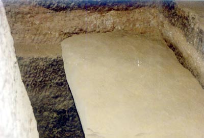 Gegenüber der Tür befindet sich ein Pfeiler, der von der Tür aus die Sicht auf einen Grabschacht verdeckt. Dieser Grabschacht hat im hinteren Teil eine Abmessung von 1,50 Meter Breite und 2,00 Meter Länge und ist im hinteren Teil zu etwa einem Drittel mit einer großen Steinplatte abgedeckt.