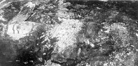 Reiche Bestattung einer Priesterin der Spätzeit aus 207/KK. NachEntfernen der Holzreste vom Sarg sind hier Perlenmaske und Perlenhemd sichtbar.
